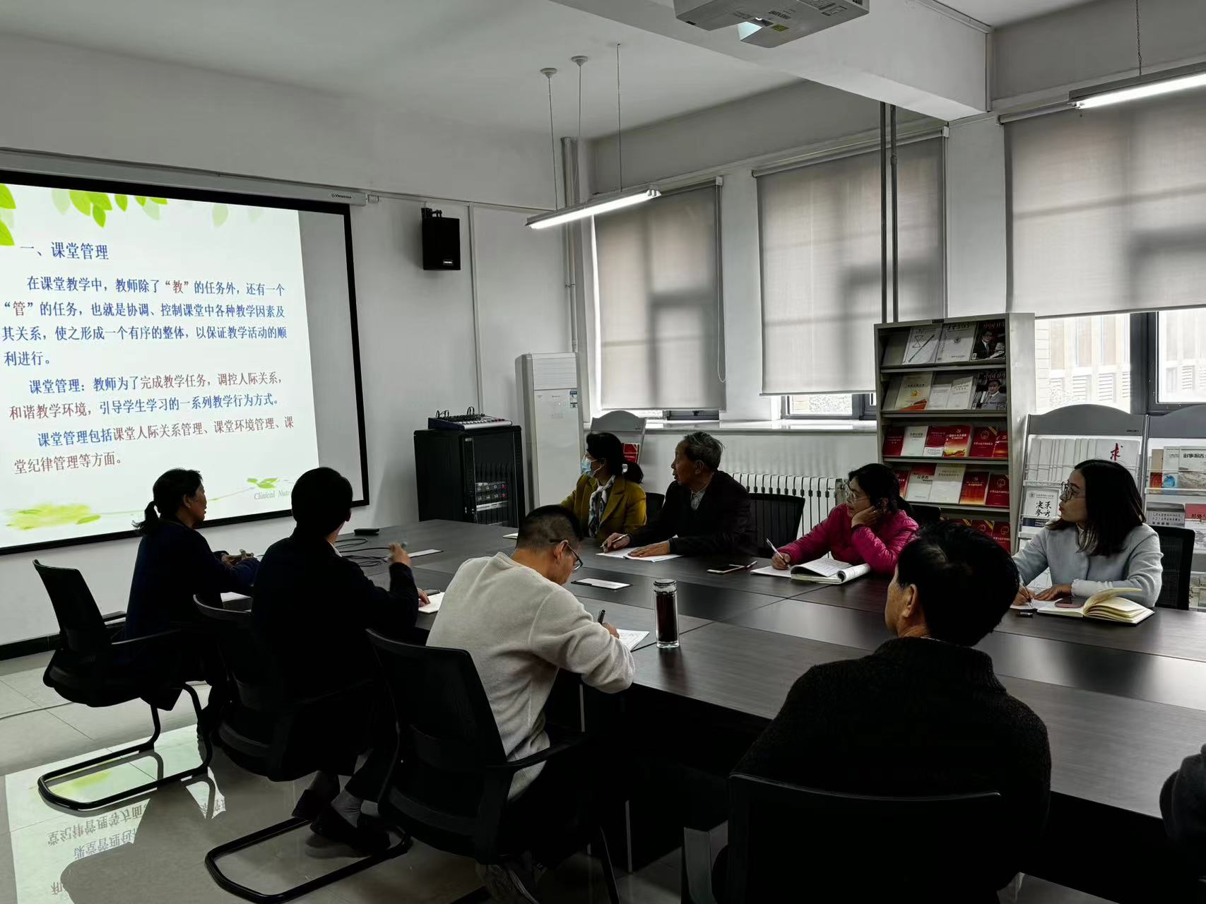 首先田玉慧教授根据教学经验围绕课堂教学进行了阐述,分别从课堂管理、课堂教学、课堂思政等方面进行讲解,并强调教学的质量归根到底取决于教学的有效性,课堂思政目标和素质目标贯穿在整个课程中于无形中完成。随后与会人员分别结合自身教学经历提出自己所遇到的问题。最后,田玉慧教授结合老师们的在教学过程中遇到的问题进行了剖析指导。常务副院长王耀峰和党总支副书记、行政副院长陈东明全程认真听取了各位教师的分享和讨论,并勉励教师尤其是青年教师努力学习和借鉴优秀教师的宝贵经验,立足于课堂,沉下心来,苦练教学基本功,使自己成为真正的“四有好老师”。