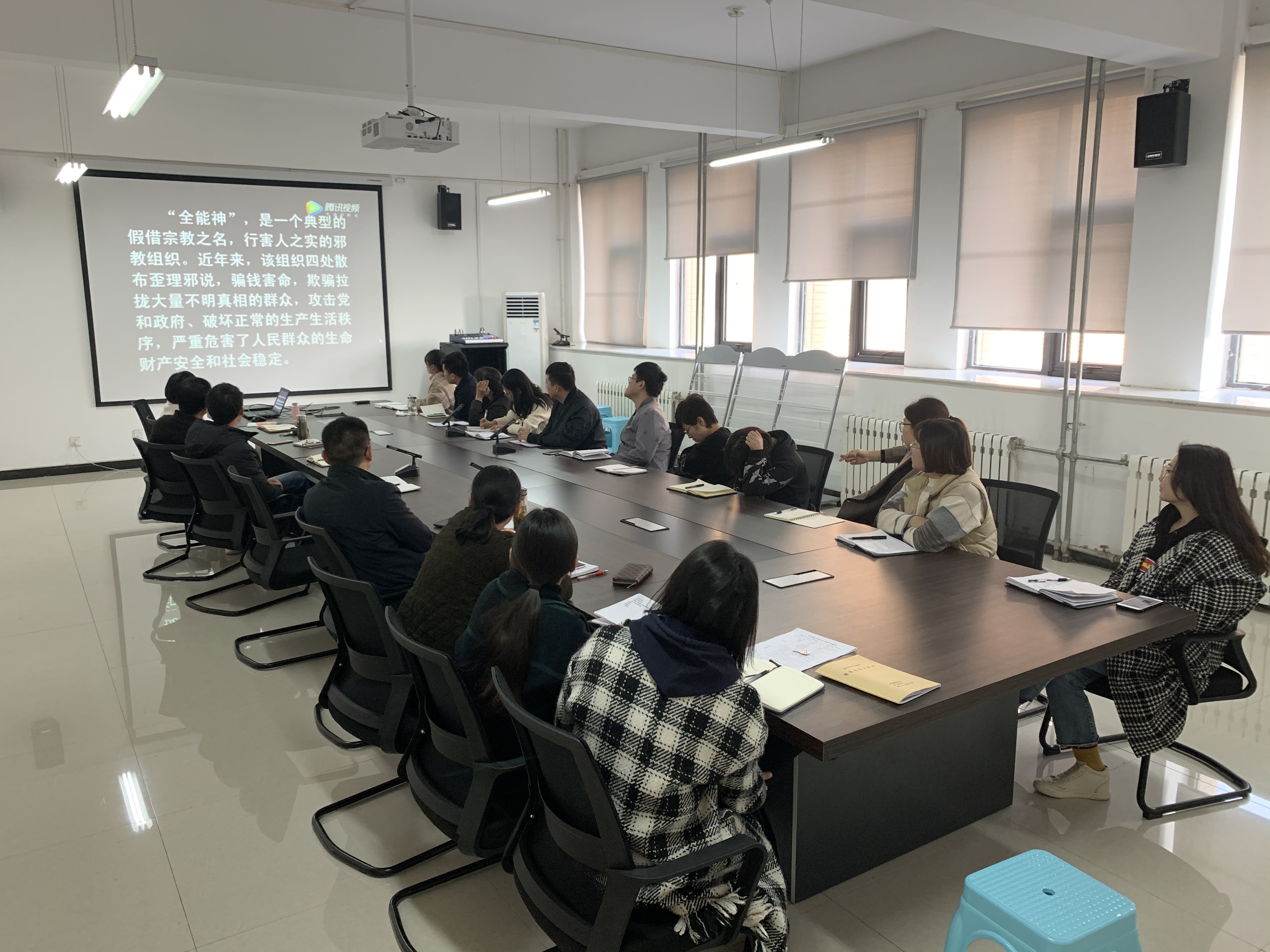 11月19日下午,新利Lucky官网全体教师在行政楼二楼会议室开展民族宗教知识讲座,本次讲座主要组织大家集中学习了民族宗教知识的重要意义、我国民族政策以及我国的宗教政策,并集体观看了《反邪教全能神》视频。
