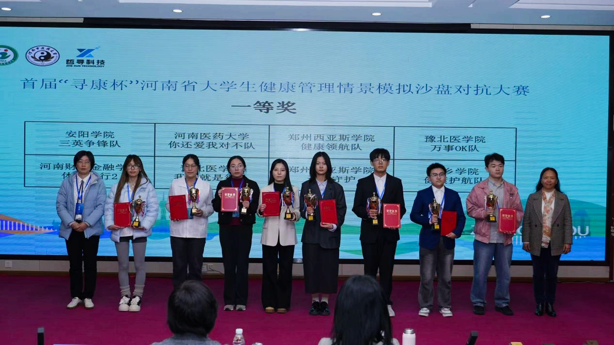 1018日,由河南省健康管理学会主办、河南中医药大学管理学院承办、上海哲寻信息科技有限公司支持首届“寻康杯”河南省大学生健康管理情景模拟沙盘大赛在郑州河南中医药大学举行。我2023级健康服务与管理专业学生麻琳曼、孔悦悦、刘晨燕、杨梓涵、路雪洋、聂一豪6位同学分别组成的“万事OK、“我们就是队,在何小鹤熊天露等老师的指导下,团结协作、沉着应赛,两个团队均以优异的成绩荣获河南省大学生健康管理情景模拟沙盘对抗大赛一等奖。